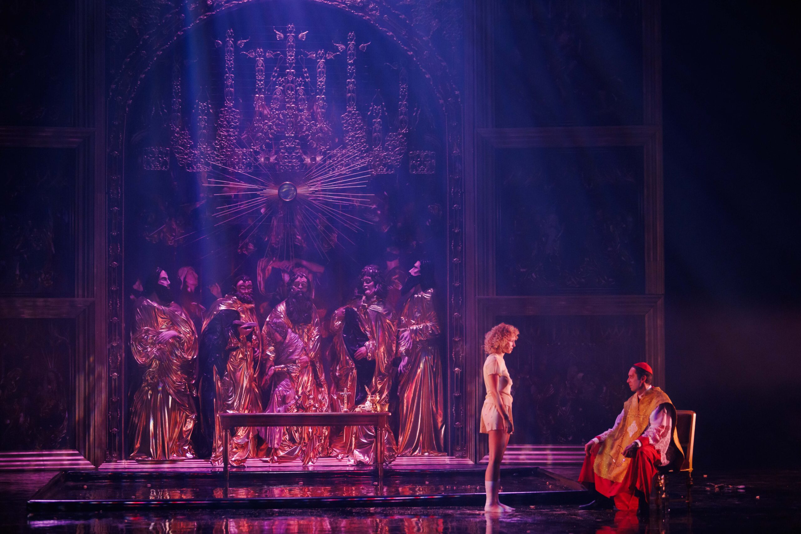 160 minut wspaniałego przedstawienia rozpoczęło się od wygłoszenia aktu sprzeciwu wobec odwołania Krzysztofa Głuchowskiego z funkcji dyrektora teatru im. Juliusza Słowackiego w Krakowie. Spektakl dziady reżyserii Mai Kleczewskiej, a książka Adama Mickiewicza znacząco różnią się od siebie. Dość drastyczną zmianą jaką wprowadziła Pani reżyser była zmiana płci głównego aktora – Konrada. Jednak oglądając przedstawienie nie zmieniło to głównego przekazu tego dramatu amorficznego. Aktorka doskonale odegrało swoją rolę oddając głębię tej tajemniczej postaci jaką jest Konrada. Kolejny zaskoczeniem było wprowadzenie części filmowej do spektaklu, akcja nie tylko toczyła się na deskach teatru opolskiego, ale także na ekranie. To były jedne z głównych dość kontrowersyjnych aspektów tego dzieła. Aktorzy także wykonali piękny gest w stronę naszych wschodnich sąsiadów – Ukraińców w akcie poparcia dla nich. Na samym początku został wyrecytowany przez Ukrainkę wiersz “Do przyjaciół Moskali” po polsku. Natomiast podczas bisu została zaprezentowana flaga ukraińska oraz jedna z artystek wykrzyczała ‘’Chwała Ukrainie”.