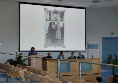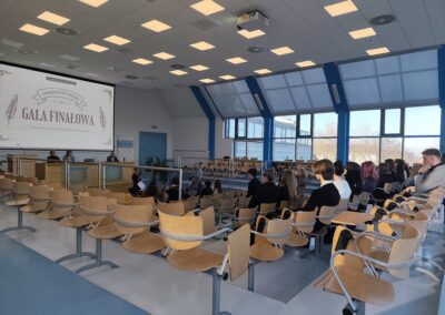 Tuż po Oliwii głos zabrała Pani Dziekan, podkreślając wyjątkowość wydarzenia, jak również wyrażając wdzięczność za udział, przybycie i zaangażowanie wszystkim uczestnikom, a także organizatorom. Jako kolejny przemawiał prof. Marcinkiewicz. Zwrócił on uwagę na to, by doceniać swoich polonistów oraz sam język polski. Jako przyszłość literatury określił wykorzystywanie sztuk wizualnych. Prof. Mazur podjęła się zaś podsumowania konkursu, w skrócie charakteryzując autorów patronujących 2025 rokowi i podkreślając także stopień trudności odbioru ich dzieł, zwłaszcza utworów Żeromskiego, cechujących się dość skomplikowanym stylem.