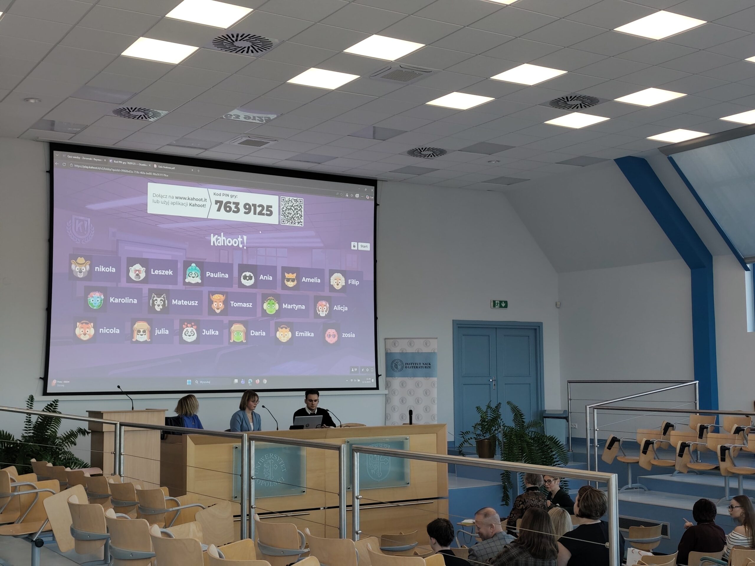 Ostatnim punktem programu przewidzianego na piątkowe przedpołudnie był quiz autorstwa członków SKN Literatury i Kultury Modernizmu. Laureaci raz jeszcze mieli okazję, by zmierzyć się z wiedzą na temat życia oraz twórczości dwóch młodopolskich mistrzów pióra. Najlepsza w kahootowej zabawie okazała się Martyna.