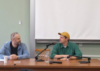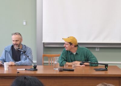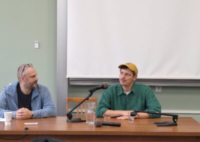 Na spotkaniu poruszonych zostało wiele tematów związanych z serialem, ale i nie tylko – dotknięto również kwestii innych twórczości autora. Uczestnicy mieli także okazje, by zadać pytania reżyserowi i robili to z wielką chęcią, nie tracąc przy tym ani chwili na wahania. Panowała bardzo przyjazna atmosfera i padały żarty wywołujące dużo śmiechu na sali.