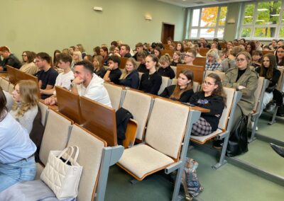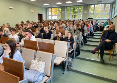 Wśród wykładowców głos zabrała dr Sandra Murzicz, która podzieliła się swoimi doświadczeniami związanymi z różnorodnością kulturową, sięgając do wspomnień z dzieciństwa. Wspominała między innymi o paczkach, w których znajdowały się misie Haribo – słodycze niecodzienne w tamtych czasach – oraz o tradycjach, takich jak zajączek wielkanocny, który dawniej nie był tak powszechny jak dziś.